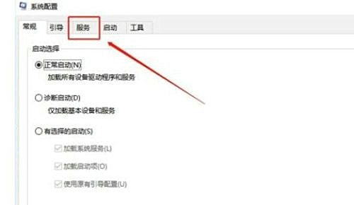 3、点击确定按钮之后就打开这个系统配置界面了,如下图中所示,点击之后再点击服务这个选项,切换到服务界面中。