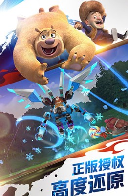 游戏由熊出没动画正版授权,完美的呈现出了原版动画角色的特点。同时还拥有环环相扣的冒险关卡设定和电影级画面的大型3D场景,必定能让玩家体验到前所未有的机甲格斗快感!