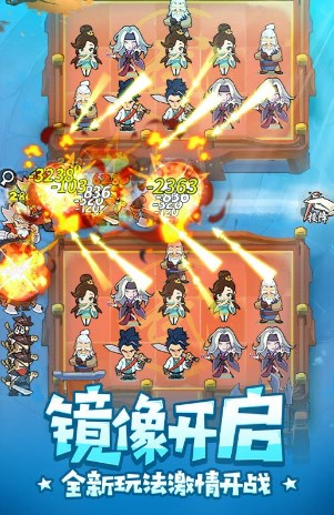 在每场战斗中,玩家都可以使用真气给英雄升级,升级后的属性提升会加成到场上所有的同种英雄上;