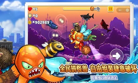 3. 进化系统:游戏中的变异八爪鱼可以通过不断的挑战和冒险进行进化,变得更加强大和独特。