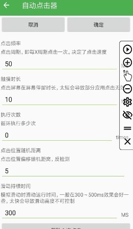 长按屏幕上的点击区域,会触发一键参数设置界面。