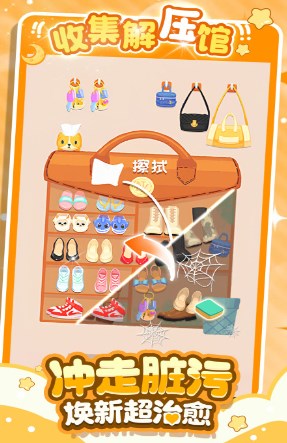 以生活化场景为背景,像衣柜、书桌、厨房等,画面清新简洁,色彩柔和,无复杂规则,适合碎片化时间游玩,让玩家在整理物品的过程中放松心情,缓解日常压力。