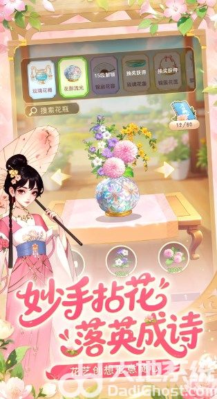 通过解锁更多品种的花,就可自由搭配来完成插花作品。