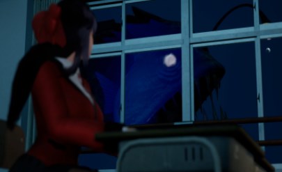 淹没的教室、长满珊瑚的走廊、渗水的实验室,搭配幽蓝滤镜与动态水纹光线,营造压抑的深海压迫感。