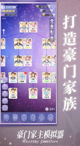 你将扮演一位豪门家族的掌舵人,在财富、权力与情感的漩涡中运筹帷幄,决定家族的兴衰命运!从商业扩张到家族联姻,从培养后代到应对突发危机,每一个选择都将编织属于你的豪门史诗。你既可开展幕后交易操纵组织势力,也能培养继承人的个性化兴趣与发展方向,更需通过收集稀有资产、应对突发噩耗与随机事件,在暗流涌动的上流争霸中守住家族荣耀——是成为百年名门还是倾覆于阴谋之中,尽在你的一念之间。
