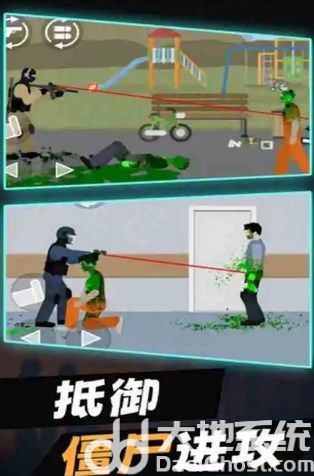 2.在游戏中,玩家要面对周围的僵尸军队,拿起你唯一的武器射击僵尸的头部!冲出包围圈,防御僵尸!拿起枪杀死每一个来的僵尸!