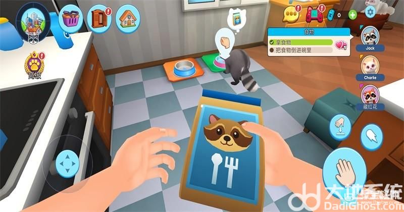 1. 互动细节丰富,可喂食、梳毛、安慰浣熊,它们会用萌趣动作反馈你的关怀。