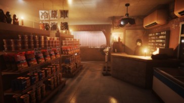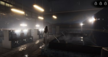 澡堂蒸汽弥漫的怀旧设备、神社荒颓的祭祀痕迹、公寓走廊黑洞中蠕动的头发,均以低多边形建模渲染诡谲氛围。