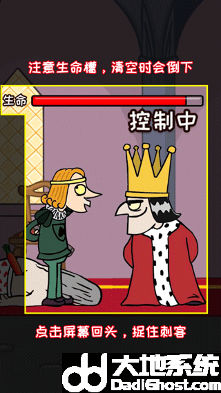 2. 成为国王后,点击屏幕让国王回头,识别身后可疑刺客并抓捕,防止被刺杀,守住自己的王座。