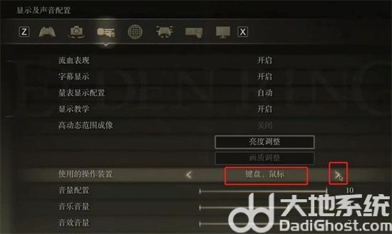 点击旁边>的符号,把操作方式从手柄切换为键盘、鼠标。这样玩家就可以完成从手柄到键盘、鼠标的操作设置了,再进入到艾尔登法环就可以发现所有的操作都是通过键盘和鼠标进行操作了。