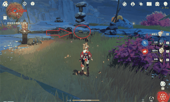 第二件供物,岁时之冕。这件供物因为在地面,也是可以在跑图的过程中完成的,位于地面矿区右边的传送点附近。参照物是几块大型的岩元素共鸣镇石,如果实在找不到位置,就记住在传送点的左上方一段距离就行。供奉物就放在上图中的桌子上面,并且由一个盗宝团成员看守着,我们击败盗宝团成员之后,就可以调查桌子拿到岁时之冕。