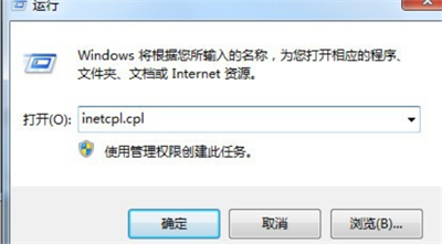 玩家win+r打开电脑运行,输入inetcpl.cpl后,点击确定。