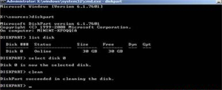 2、输入clean进行清除分区(会删除硬盘所有数据),到此步就可以再次通过PE进入系统修改磁盘信息了,到此截至,重启电脑,通过PE进入即可。