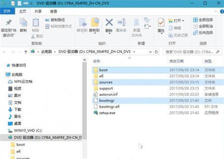 3、将Windows 10安装文件的主要文件和目录复制到要安装的系统分区中,然后再进行安装。
