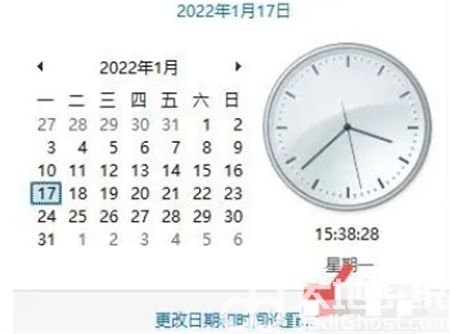 在桌面右下角单击时间,然后点击更改日期和时间。