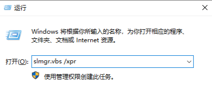 2、输入命令slmgr.vbs /xpr,点击确定运行该命令。