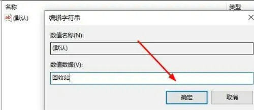 4、之后右击右侧的“默认”将键值改为“回收站”并退出即可