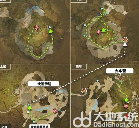 采集完所有矿脉后,快速传送至简易营地,然后再次前往顶层,重复采集。