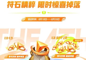4、8月18日-8月29日期间,参与指定对局,每日前2局可获三倍符石精粹。8月30日为超级掉落日,前两局可获十倍符石精粹。