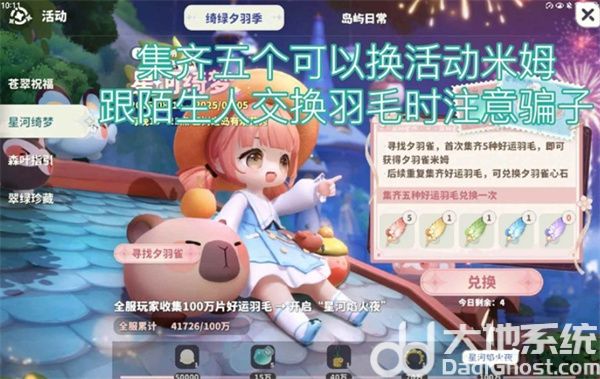 4、集齐五种不同的羽毛 后,可兑换活动限定米姆。