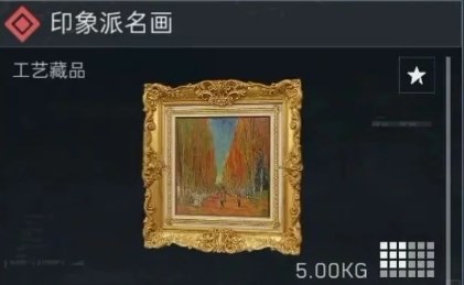 5、印象派名画:工艺藏品9格红,稀有收藏品,可兑换限定皮肤,主要产出在航天基地和长弓溪谷。