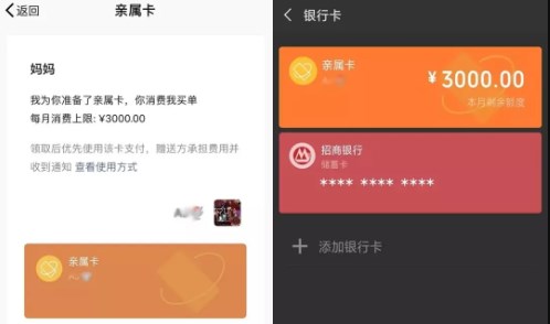 2. 在需要支付时,选择亲属卡即可。