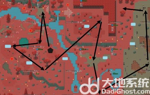 如图,从进入禁地开始,往上走开始进行刷图,只刷蓝色,如果能7分50秒完成蓝色怪全部清空,那么在最后一个传送门位置等待至倒计时2分钟,等待最后一个传送门刷新后开始跑图获取传送门信息。