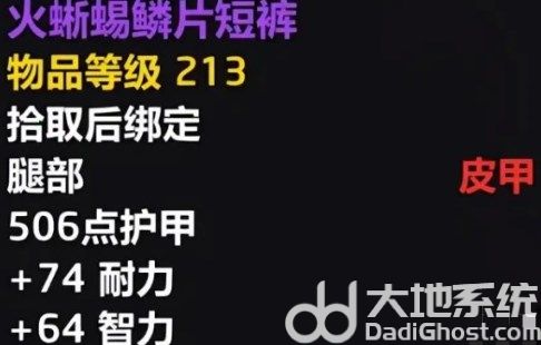 召火腿甲是一件213物品等级的板甲腿部装备,对坦克职业尤其珍贵。
