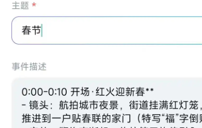 4、跳转界面后输入主题,并将复制的脚本粘贴至事件描述框中。