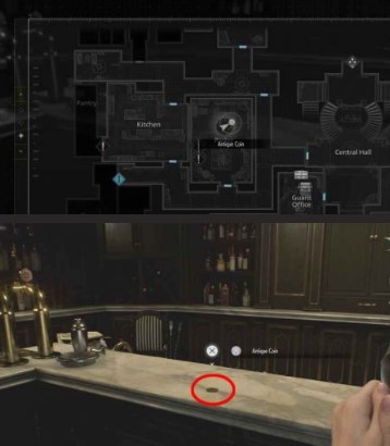 酒吧与休息厅: 在敌人身后的吧台上。内含 3枚古董币。