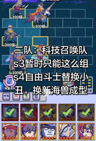 s3暂时只能这么组,S4自由斗士替换小-丑,换新海兽成型。
