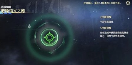 5件套效果:造成声骸技能伤害时,声骸技能暴击率提升20%,自身气动伤害提升15%,持续5秒。