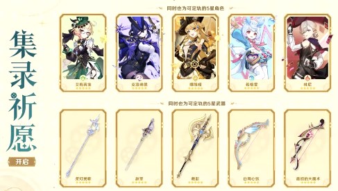 集录祈愿武器池:【最初的大魔术】+【裁断】+【白雨心弦】+【赦罪】+【柔灯挽歌】。