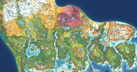 地图缩放操作共有10级,1级显示省份和传送点,2级增加显示小区域名称和区域精灵踪迹探索进度,3级增加显示人物挑战、副本等。地图上会动态更新一些限时活动的地点标记,根据这些标记及时参与到各类有趣的活动中。