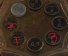 在第四章,为了难道打开教堂前面铁门的钥匙,需要到祭坛左右手放置两个头雕。第一个位置在湖的左下方,就在祭坛附近,不需要按顺序,只要3个都按对就行,