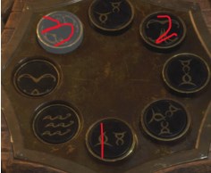 在地下灵寝宫,需要按照正确的顺序摆放三盏灯。左边半月、右边星星、上面满月。