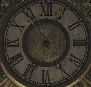在操控阿什莉时,来到图书馆,有两个钟表,将钟表调整至正确的时间,两个钟表的时间都是一样的。硬核难度下的时间时7:00,辅助和标准难度下的时间11:04。