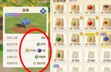 2、蓝莓是农场经验高,但是成长周期较长(32小时)
