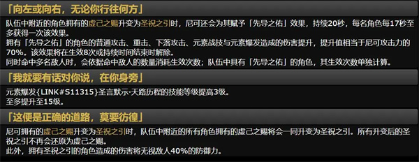 1、战技升到10级后,尼可4000点攻击可为全队角色提供600点攻击,和18976点护盾值。