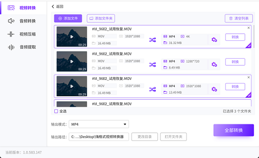 3、各种格式视频中提取各种格式的音频,一键就能搞定。